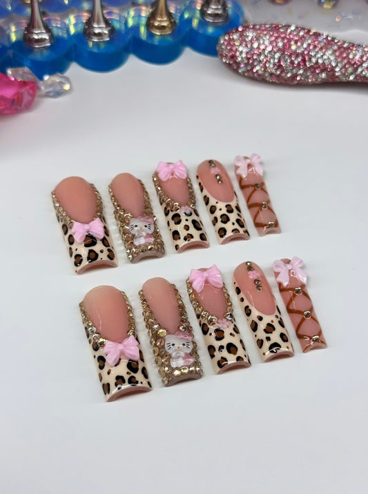 Acrylic Cute Baddie Press On Nails Leopard/Cheetah