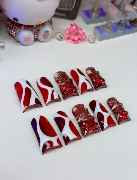 Acrylic Cute Elegant Abstract Baddie Red Press On Nails
