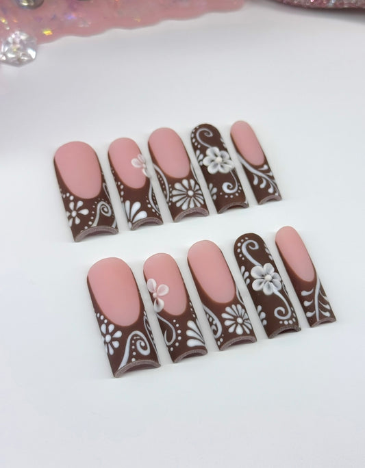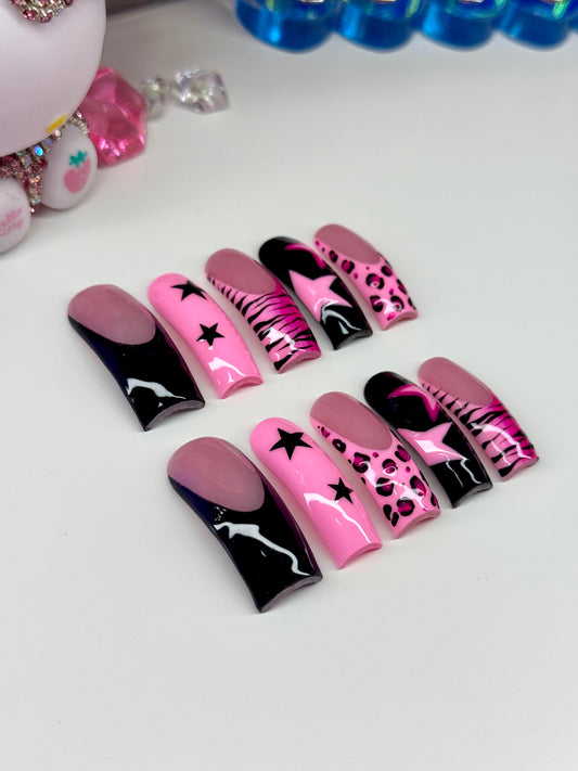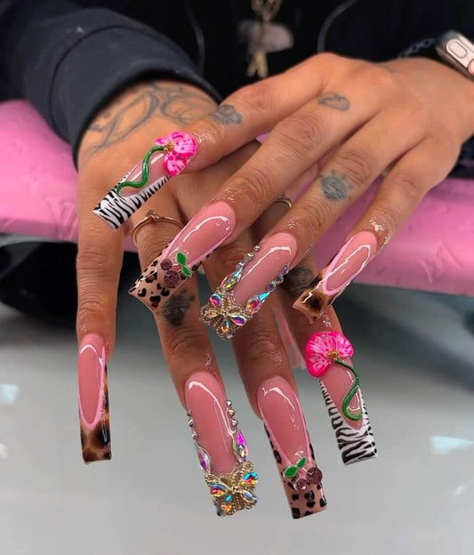 Acrylic Baddie Brown Blue Press On Nails Pink French Tips & Animal Print