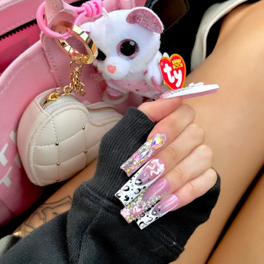 Baddie Luxurious Acrylic Press On Nails Y2K Pink Animal Print