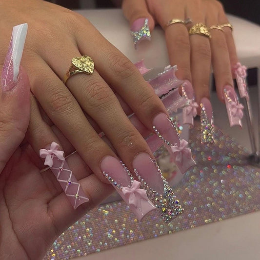 Coquette Bling Pink French Tip Acrylic Press On Nails
