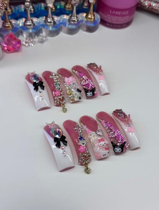Cute French Tips Japan/Tokyo 3D Acrylic Press On Nails