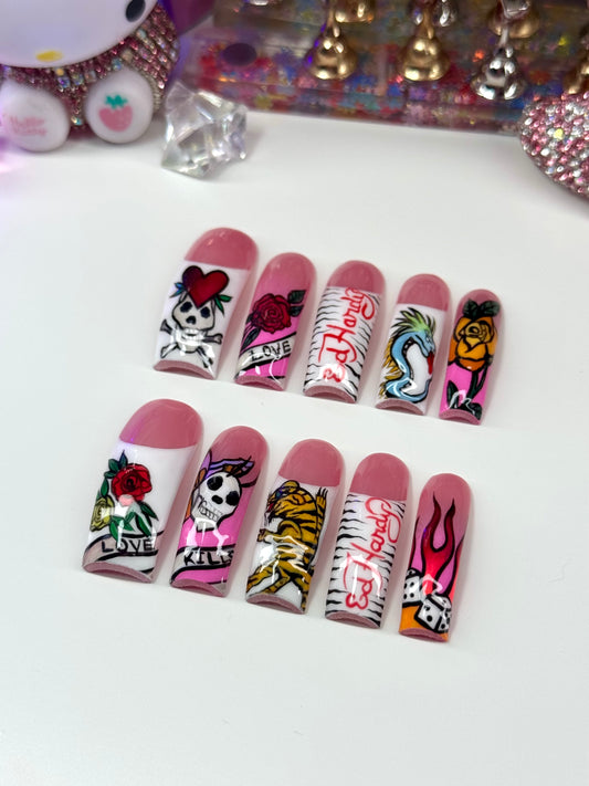 Ed Hardy Inspired French Tips Acrylic Press On Nails