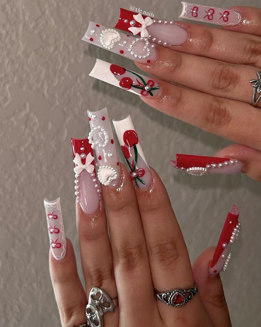 Y2K Pretty Red Coquette Cherry Acrylic Press On Nails