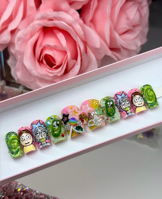 Y2K Rick & Morty Acrylic Baddie Colorful 3D Junkie Press On Nails