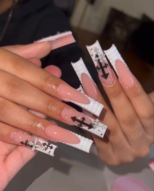 Y2K White Frenchies & Crosses Acrylic Baddie Press On Nails