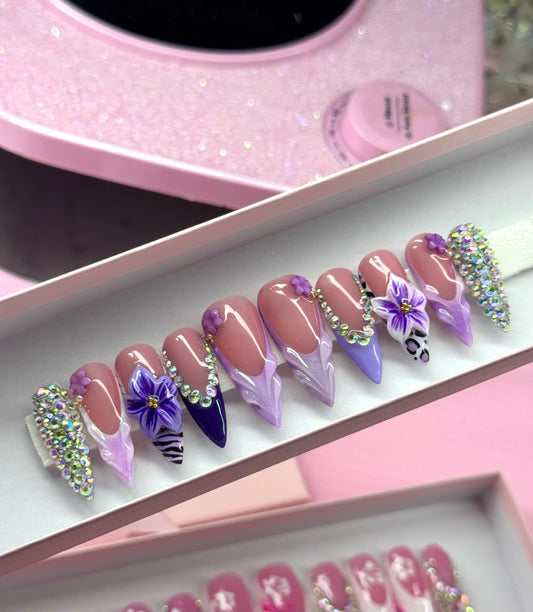 Y2K Purple Acrylic Cute Baddie Bling Press On Nails