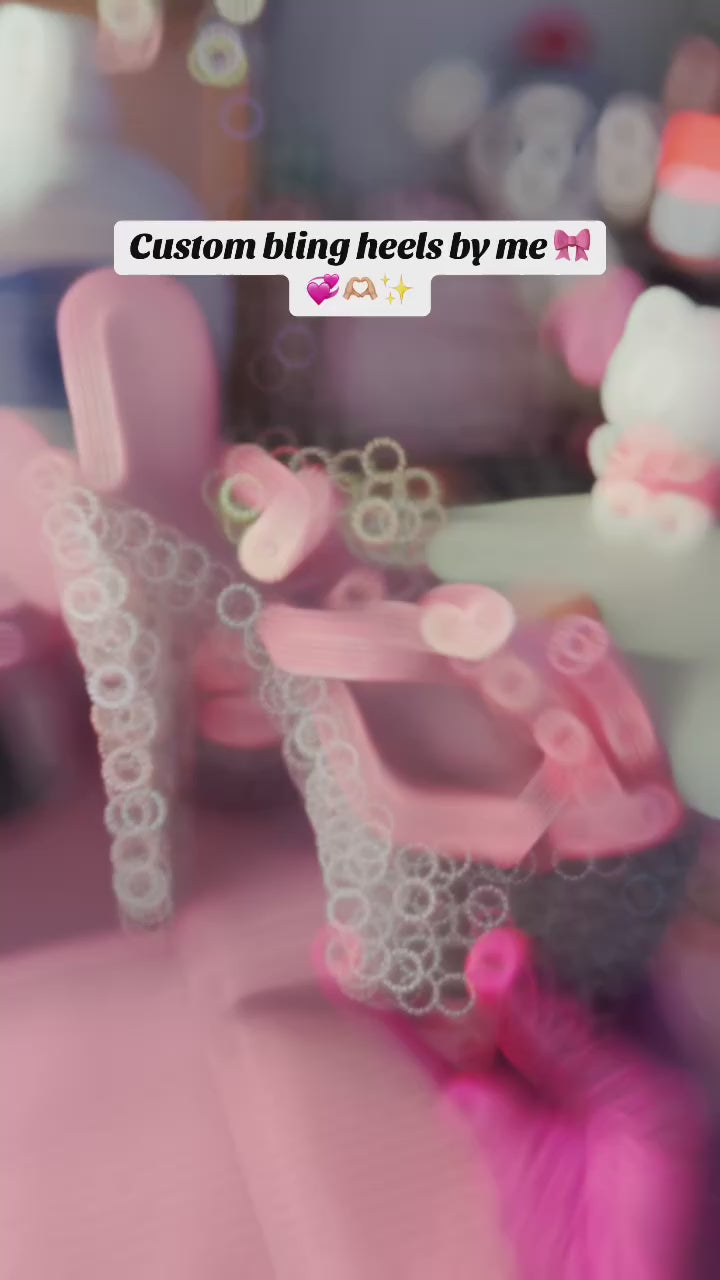 Luxurious blinged out pink bow high heels. 🎀💞👠✨
